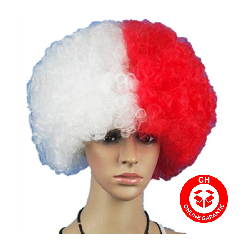 Afro Perücke Rot Weiss, der Fanartikel für Schweiz, Wallis, Fasnacht und Fussball