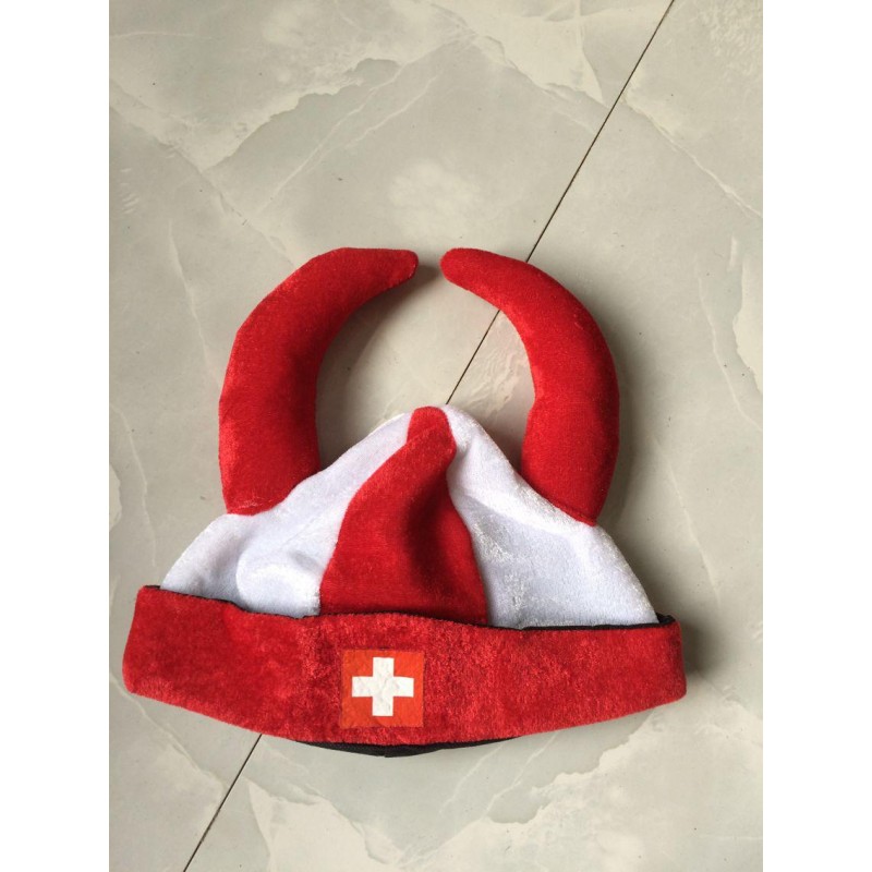 Dieser rot weisse Wikinger Hut mit Hörnern ist ein auffälliger und bequemer Schweiz Fanartikel für alle, die ihre Unterstützung für die Nationalmannschaft zeigen möchten. Das grosse Schweizerkreuz auf der Vorderseite macht den Hut zum perfekten Accessoire für jedes Fan Outfit. Ob an der Fussball Europameisterschaft, der Eishockey Weltmeisterschaft, an der Fasnacht, bei Mottopartys oder beim Public Viewing, mit diesem Hopp Schwiiz Fanartikel ziehen Sie garantiert die Blicke auf sich.