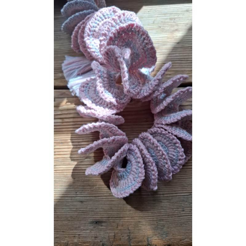 Handgemachte Häkelspirale aus den Schweizer Alpen in Rosa und Silber, einzigartig, dekorativ und bereit zum Aufhängen