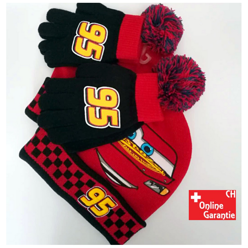 Cooles 2-teiliges Winter-Set mit Lightning McQueen. Mütze hochwertig bestickt, Handschuhe mit 95-Aufdruck. Perfekt für Kinder von 2-8 Jahren. Sofort lieferbar oder zur Abholung bereit direkt in der Schweiz!