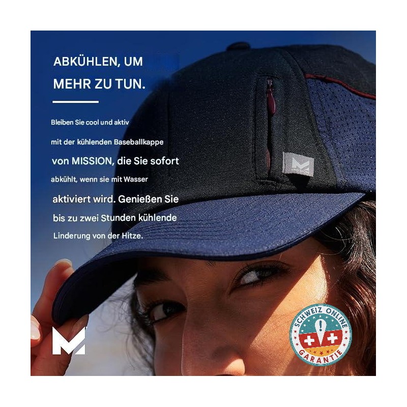 Mission Cooling Summit Cap – Kühlcap für Outdoor und Sport mit HydroActive™ Technologie. Bleiben Sie cool bei heissem Wetter dank UPF 50+ Sonnenschutz und integrierter Reissverschlusstasche für Ihre Wertsachen