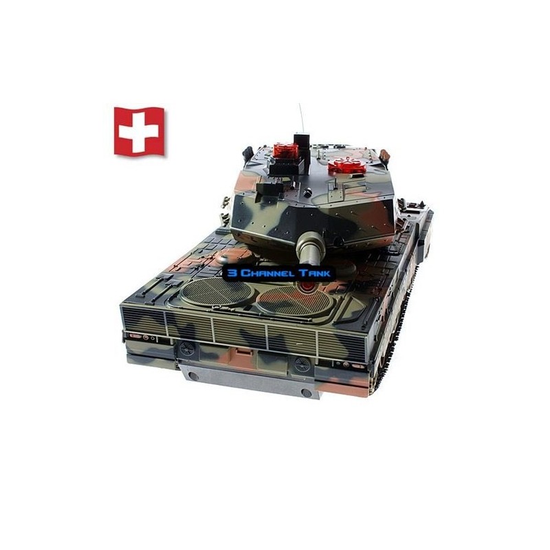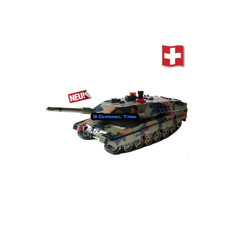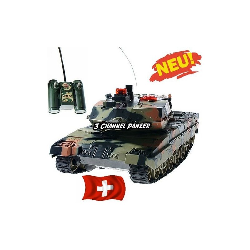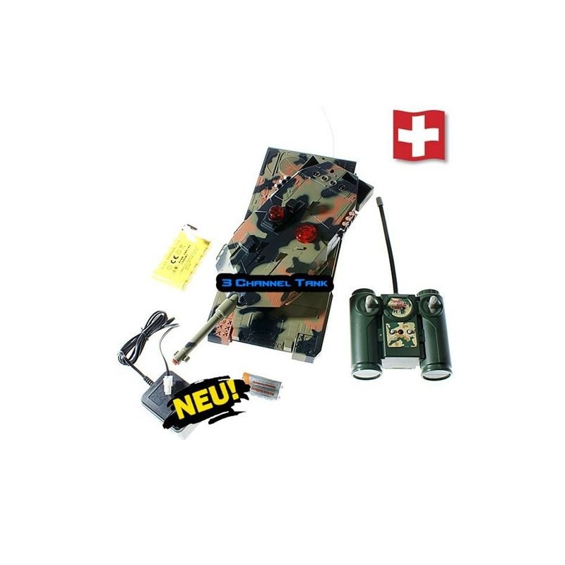 Funkgesteuerter 3 Channel Panzer inkl. Fernbedienung, Akku, Ladegerät und Zubehör! Mit starken Motoren, sehr gutem Getriebe, tollen Soundeffekten und einer hervorragenden Qualität Dieser ferngesteuerte Panzer macht einfach Spass und dass zu einem äußerst günstigen Preis! Durch seinen Kettenantrieb und Einzelradaufhängung fährt der Panzer sehr gut im Gelände, selbst vor dicken Teppichen oder bei Steigungen macht er nicht halt. Eine besonders gute Manövrierfähigkeit zeichnet diesen Panzer aus.
