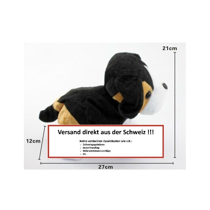 Der süsse Plüsch Mops Hündchen reagiert auf Klatschen. Er bettelt, winselt, kann Männchen, Handstand, Sitz machen und noch vieles mehr. Er ist 27 cm groß. Die Lieferung erfolgt ohne Batterien – es werden 4xAA benötigt.