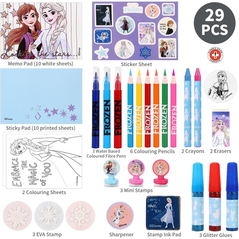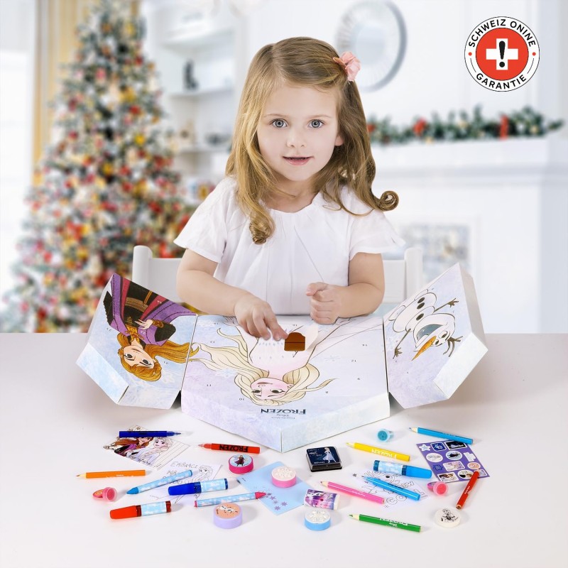 Machen Sie die Adventszeit zu einem besonderen Erlebnis mit dem Disney Die Eiskönigin Adventskalender. Hinter 24 Türchen warten 29 kreative Überraschungen mit Elsa, Anna und Olaf. Kinder finden darin Mal- und Bastelartikel wie Stifte, Sticker, Radiergummis und viele weitere kleine Schätze, die jeden Tag bunter machen.