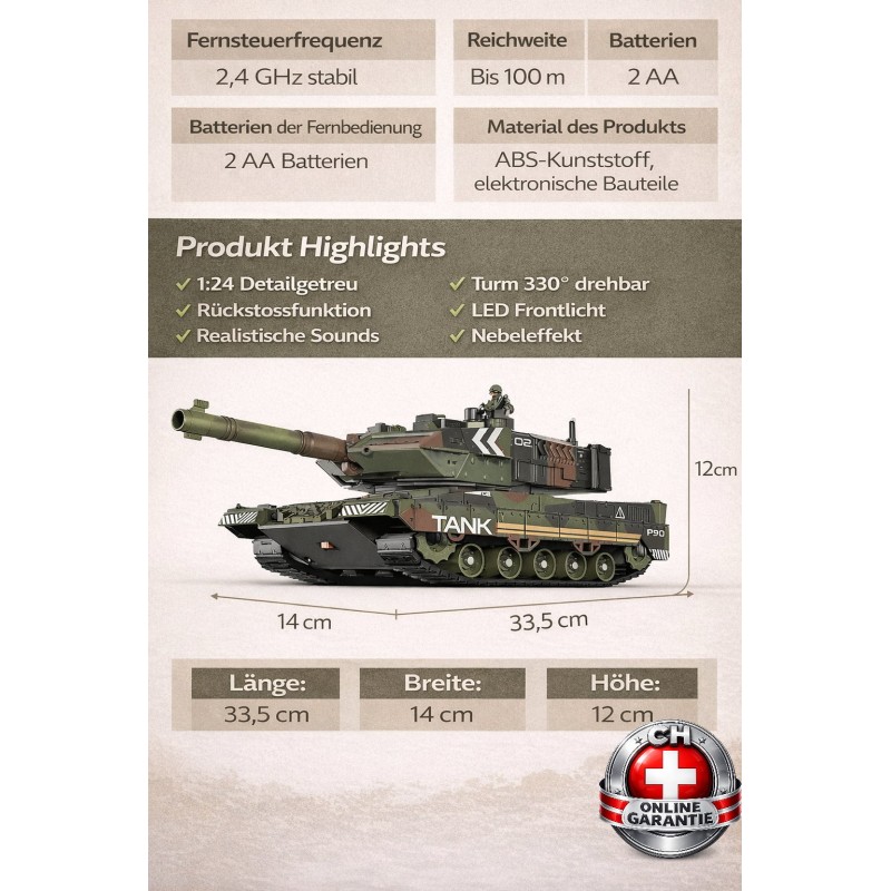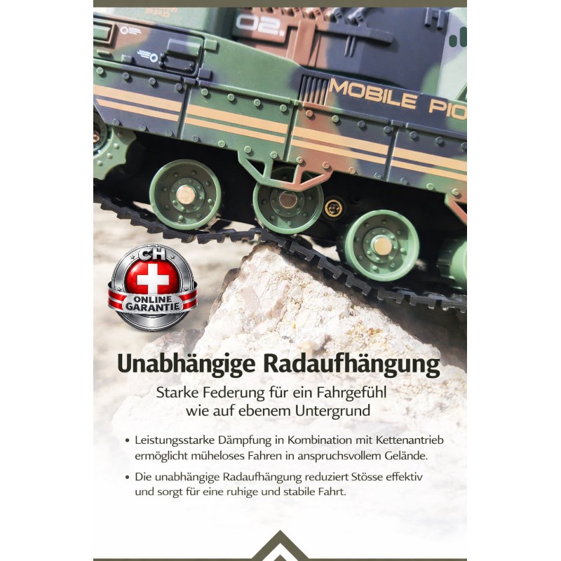 Ihr neuer RC Panzer mit Camouflage-Design: Jetzt bestellen für eine schnelle Zustellung direkt aus der Schweiz.