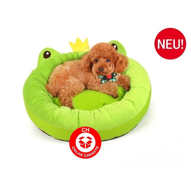 Ce lit design vert au prince grenouille permet à votre compagnon à quatre pattes de dormir comme sur des nuages.