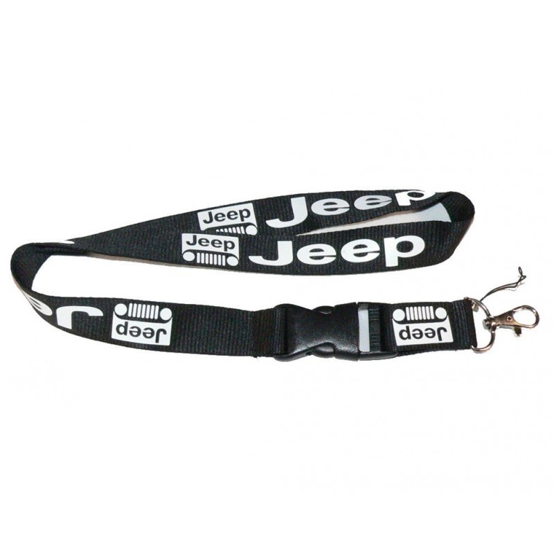 Lanière porte-clés Jeep robuste en polyester noir avec clip amovible et mousqueton. Idéale pour clés, badges, cartes d’identité ou comme cadeau pour passionnés de Jeep