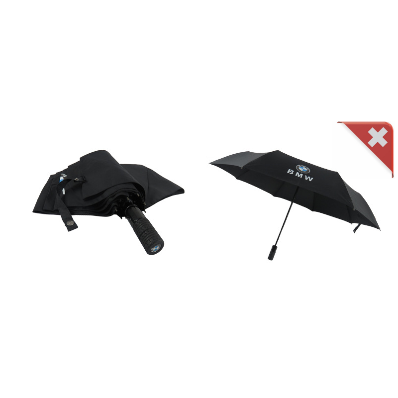 Le parapluie pliant BMW noir se glisse dans presque toutes les poches. Le parapluie de poche avec logo imprimé impressionne par son design « coupe-vent » et possède un revêtement spécial hydrofuge et anti-salissures.