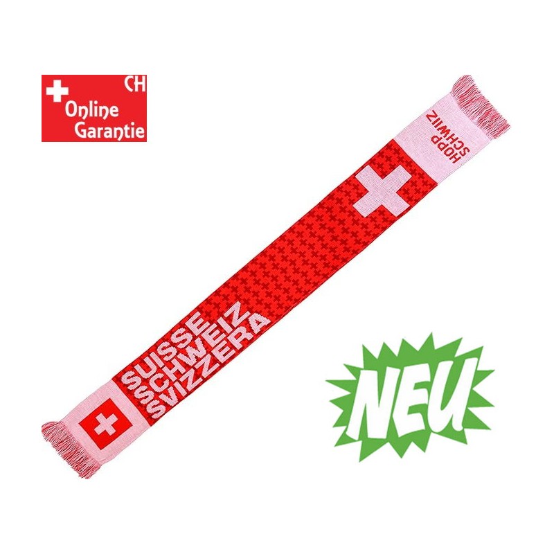 Avec le frappant Suisse Schweiz Svizzera ou un côté avec les inscriptions Hopp Schwiiz et Hop Suisse et les croix suisses, cette écharpe est parfaite pour le prochain match.