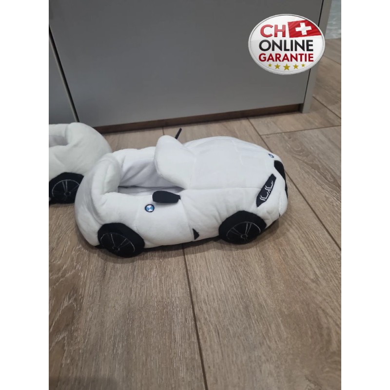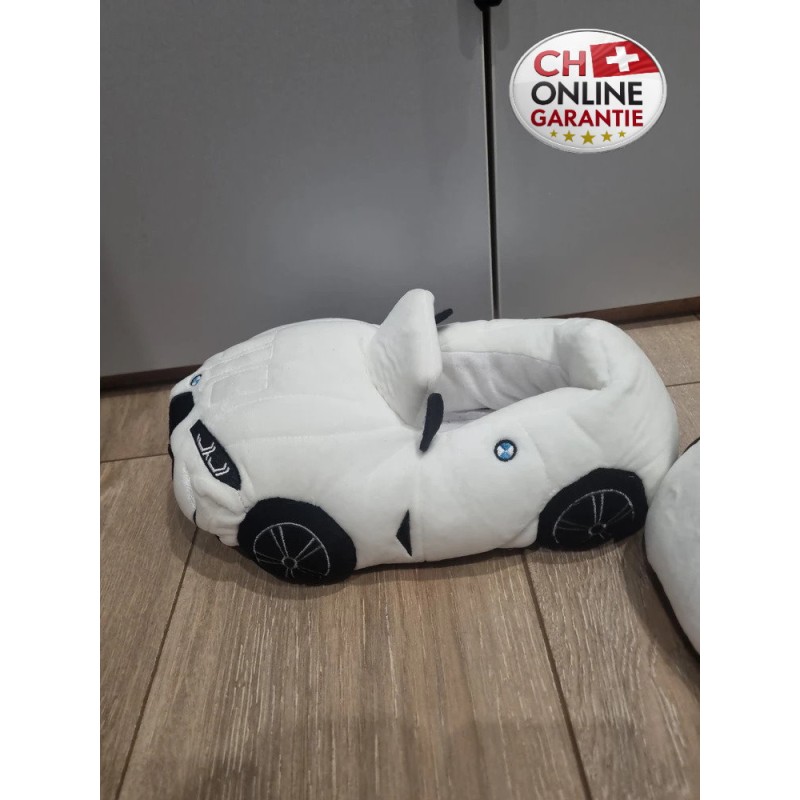 Ces chaussons en forme de BMW sportive apportent une touche de plaisir à votre quotidien. Le modèle est réalisé en peluche douce de couleur blanche avec des accents noirs. La forme s’inspire d’un BMW et apporte une sensation douce et réconfortante. Le rembourrage est agréable et offre un confort immédiat.