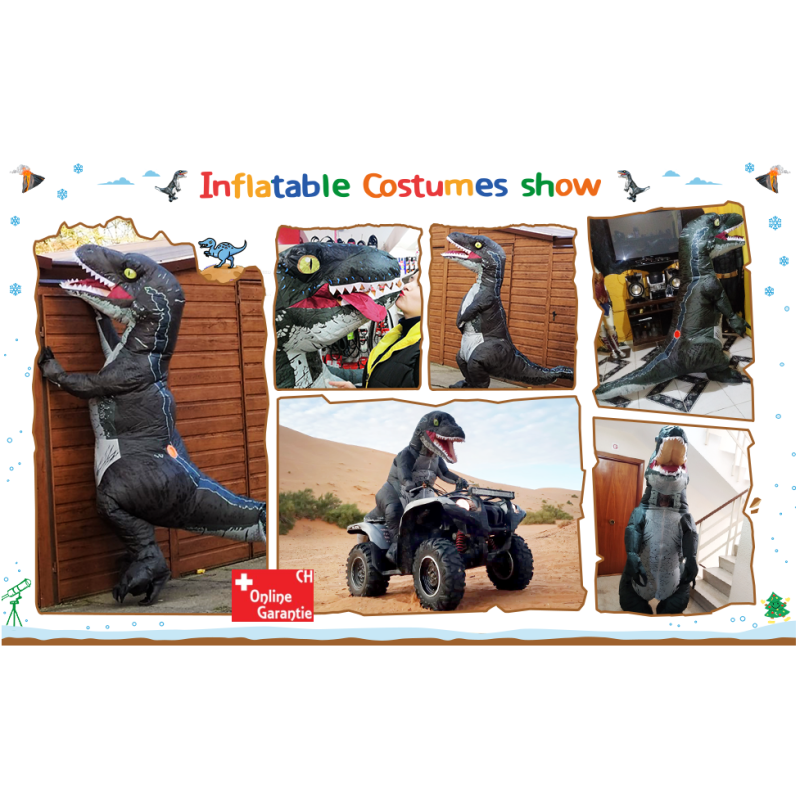 Transformez-vous en Velociraptor hilarant ! Costume gonflable avec ventilateur intégré, idéal pour Halloween, carnaval et toute envie de rugir. Pour adultes & ados (150–190 cm).