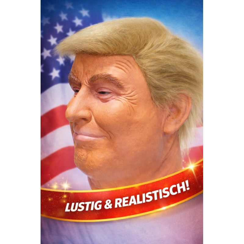 Vous cherchez l'accessoire ultime pour le prochain Carnaval ou une soirée à thème politique ? Avec ce masque Donald Trump plus vrai que nature, vous attirerez tous les regards. Que ce soit pour une parodie humoristique ou pour une entrée remarquée en tant que « Mr. President », ce masque intégral est le point fort de toute fête. Ce masque se distingue par ses traits réalistes et sa célèbre chevelure blonde. Grâce à un travail précis sur les rides et l'expression caractéristique, l'effet visuel est garanti.