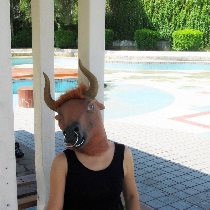 Et ce masque en latex vous transforme instantanément en bête de foire redoutée – avec cornes brillantes, crinière ébouriffée et un anneau nasal bien visible. On vous regarde ? C’est normal.