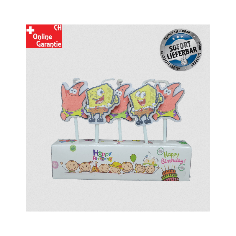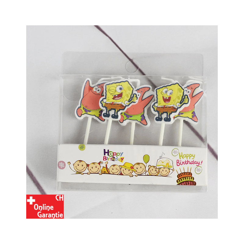 Vous obtenez ici cinq bougies avec des motifs de Bob l'éponge et de Patrick Starfish.