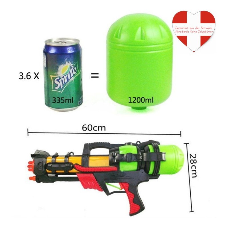 Maintenant, tout le monde a besoin de se calmer et cette offre arrive juste au bon moment. Pistolet à eau / carabine à eau XXL avec réservoir de 1,2 litre, portée d'environ 8 à 10 mètres, différentes couleurs. Taille : environ 60 cm. C'est très amusant en cet été très chaud ! Idéal pour : petits et grands.