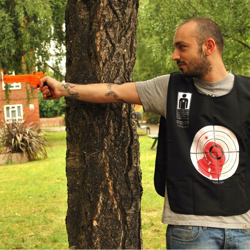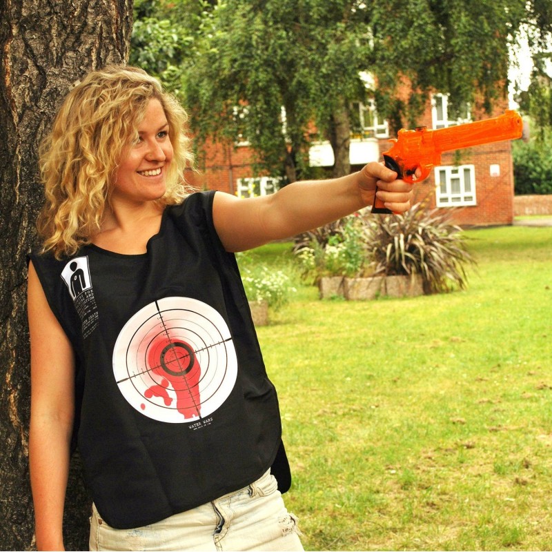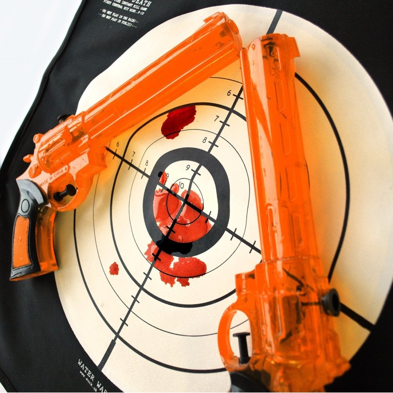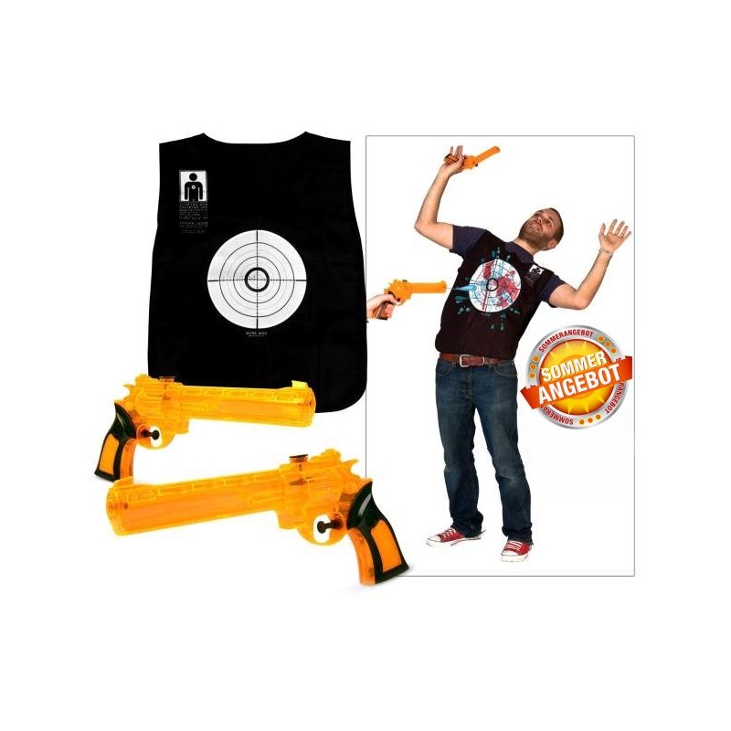 • Le jeu comprend - 2 x pistolets à eau et 2 x gilets à couleur changeante.