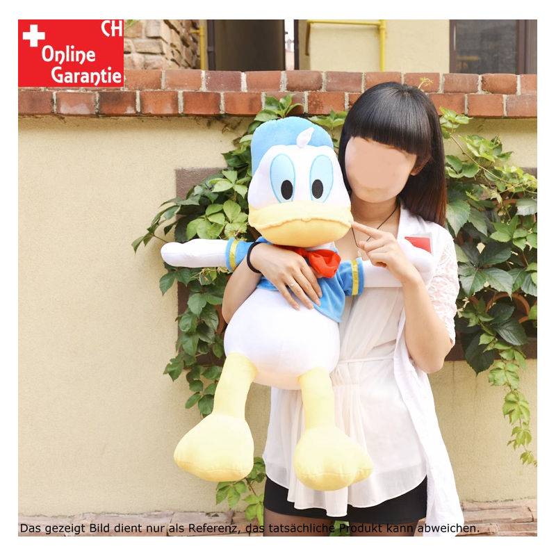 Donald Duck arrive en grand format. Avec environ 80 cm de tendresse il devient la peluche idéale pour les moments câlins. Détails soignés avec chapeau bleu et nœud papillon rouge. Cette peluche est parfaite comme doudou, jouet ou idée cadeau pour enfants et adultes. La star culte de Disney fait briller les yeux et apporte humour et bonne humeur dans chaque maison.