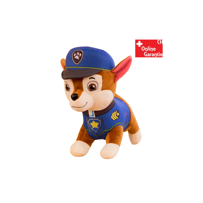 Cette peluche douce représente Chase, le courageux chien policier de la célèbre série pour enfants PAW Patrol. Avec son uniforme bleu et sa casquette, il est immédiatement reconnaissable et prêt à vivre de nombreuses aventures dans une chambre d’enfant.