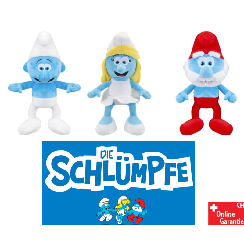 Vous recevrez trois jouets en peluche, par exemple Schtroumpfette / Grand Schtroumpf, chacun mesurant environ 22cm.