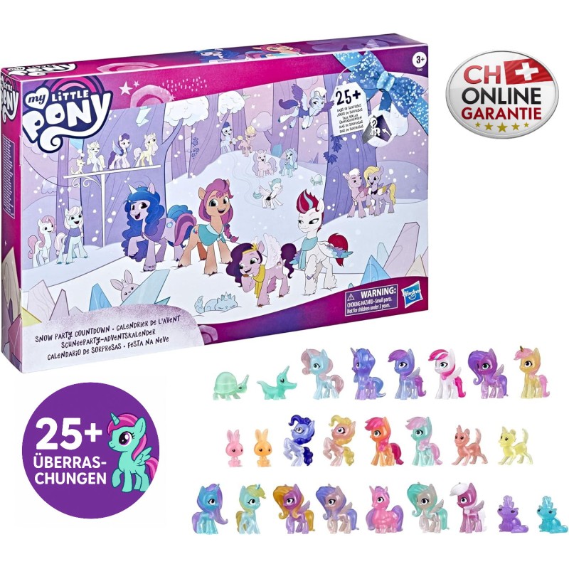 Célébrez l’attente de Noël avec le Calendrier de l’Avent My Little Pony Snow Party. Chaque jour, les enfants découvrent une nouvelle surprise parmi plus de 25 jouets et accessoires colorés.
