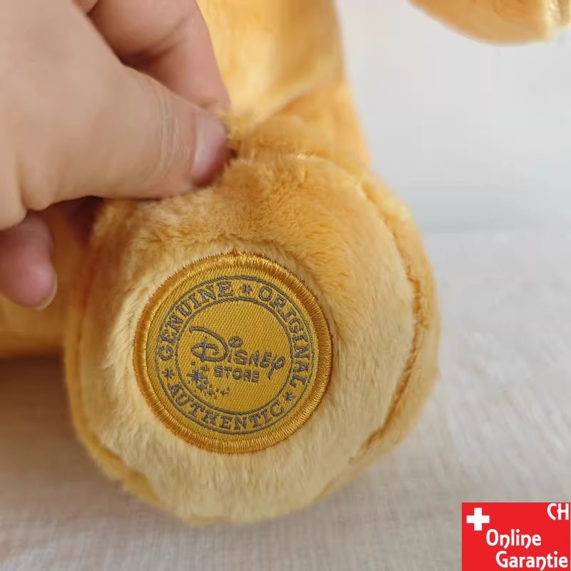 Sur la première image, vous voyez clairement le label rond Disney Store sur la patte droite. Ce label confirme que vous recevez un produit de qualité supérieure.