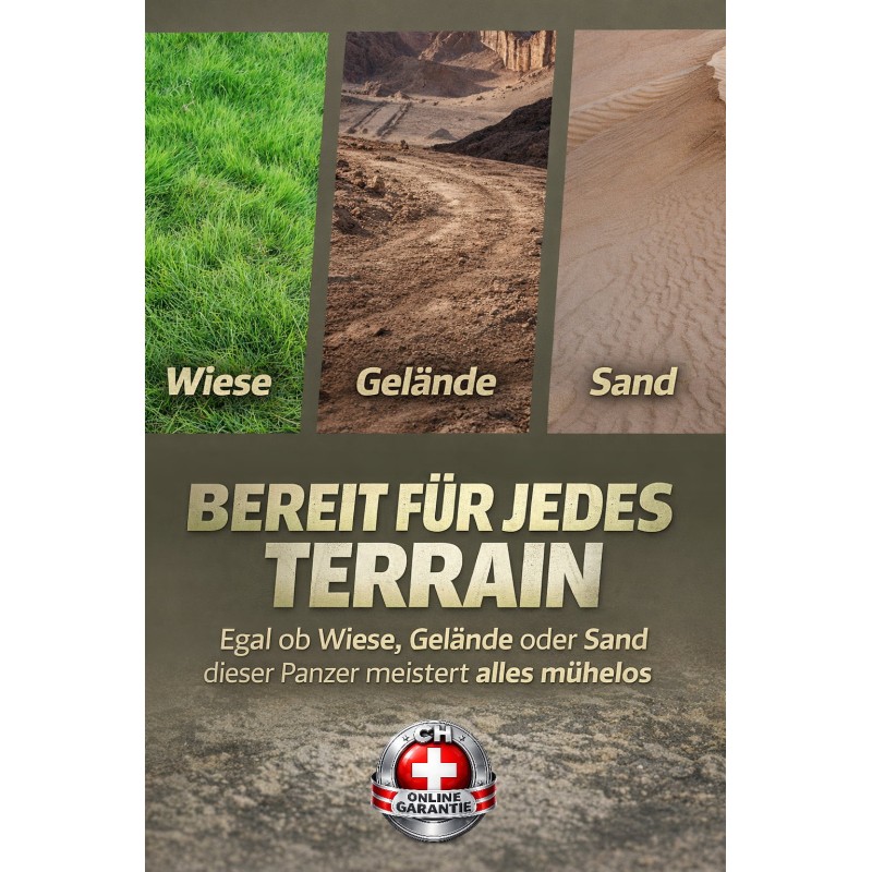 Votre nouveau char RC au design camouflage : commandez maintenant pour une livraison rapide directement depuis la Suisse.