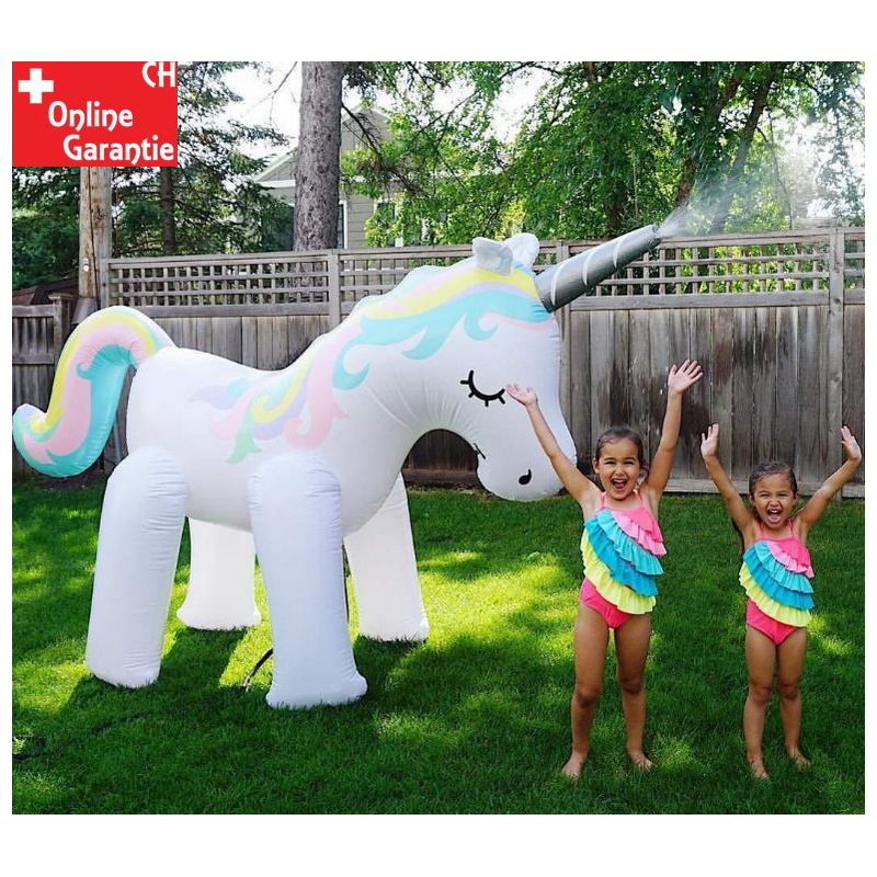 Licorne blanche XXL avec crinière colorée comme arroseur d'eau