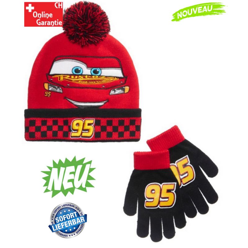 Set hiver Flash McQueen pour enfant (2-8 ans) incluant un bonnet avec broderie haute qualité et des gants assortis imprimés 95. Article en stock en Suisse : profitez d'une livraison rapide ou d'un retrait immédiat !