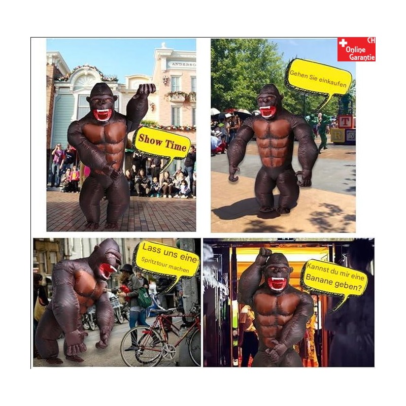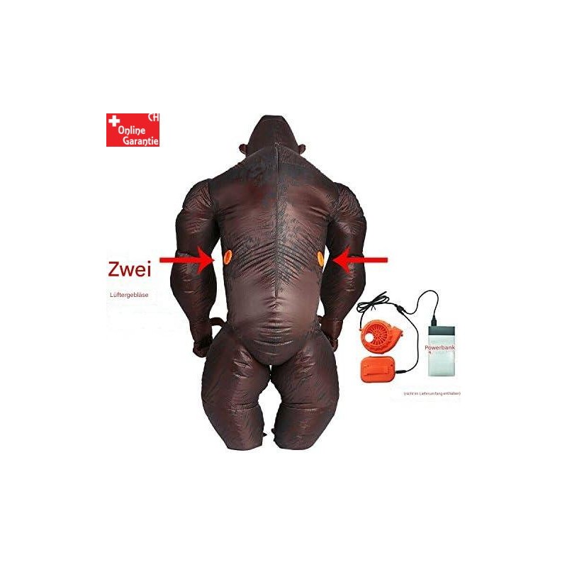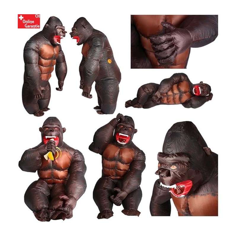 Costume de gorille gonflable avec souffleur intégré (4 piles AA ou powerbank non incluses).
